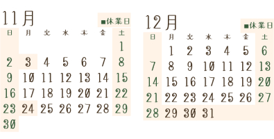 ※休業日には商品の発送・お問い合わせの返信ができません。